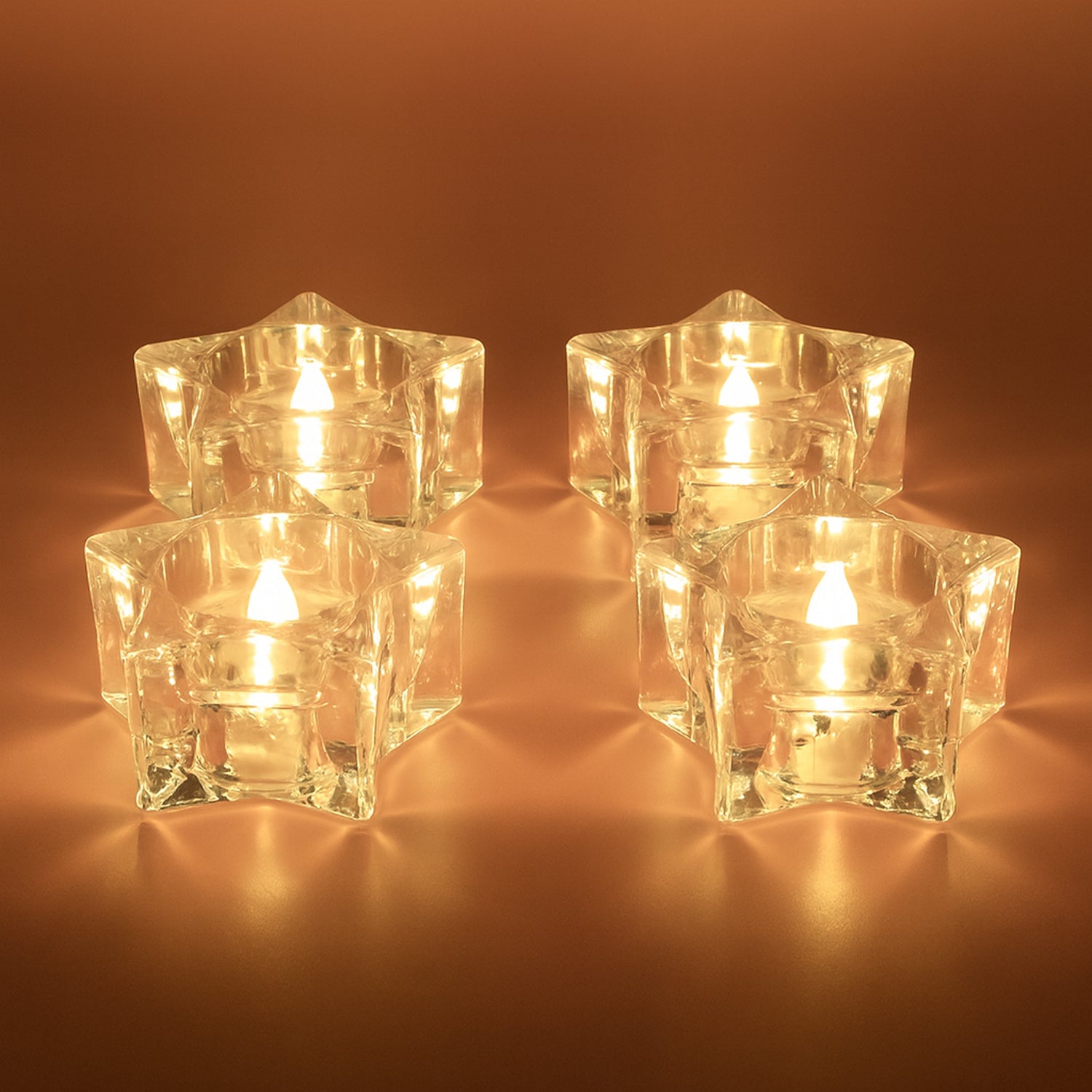 Illuminate your celebrations with this elegant set of 12 LED crystal-effect flameless candles. Designed with a ribbed crystal-style body, these candles produce a warm flickering glow that mimics real candlelight while being completely safe and mess-free. Battery-operated and reusable, they are the perfect replacement for traditional candles, offering beauty without smoke, heat, or dripping wax. Ideal for enhancing home interiors, festive celebrations, weddings, and special events, these decorative candles add sophistication and charm to any space.