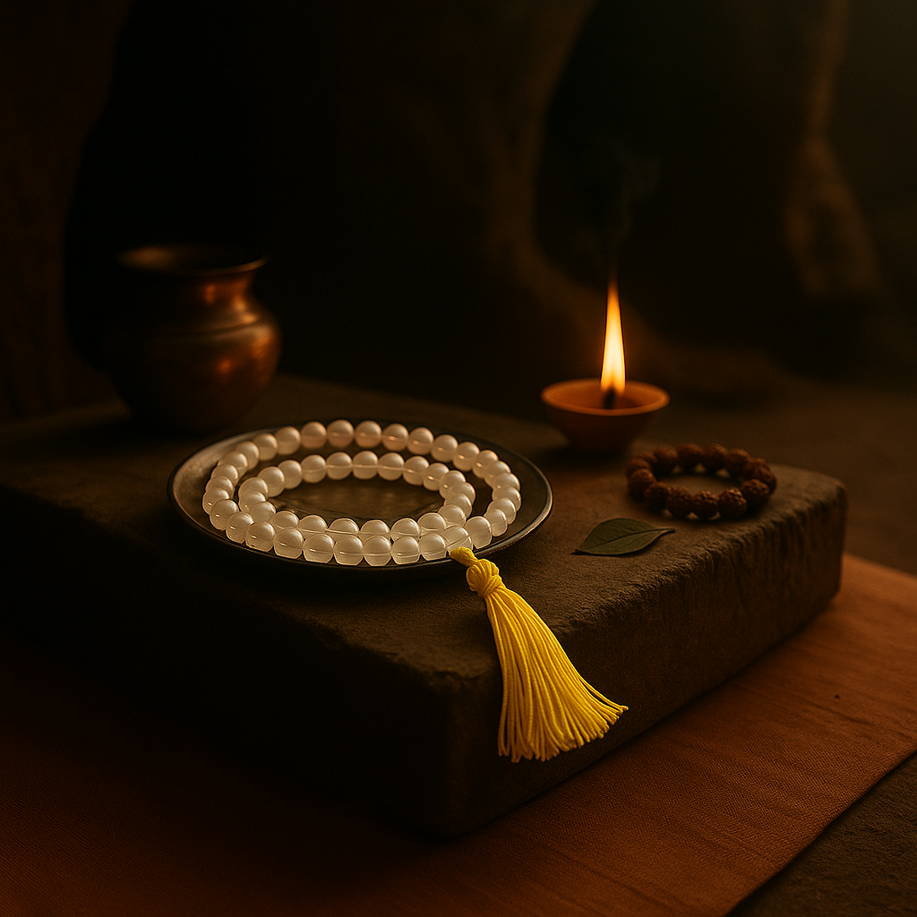 Sphatik Mala – 108 Beads | Natural Crystal Quartz | Energized for Peace & Clarity