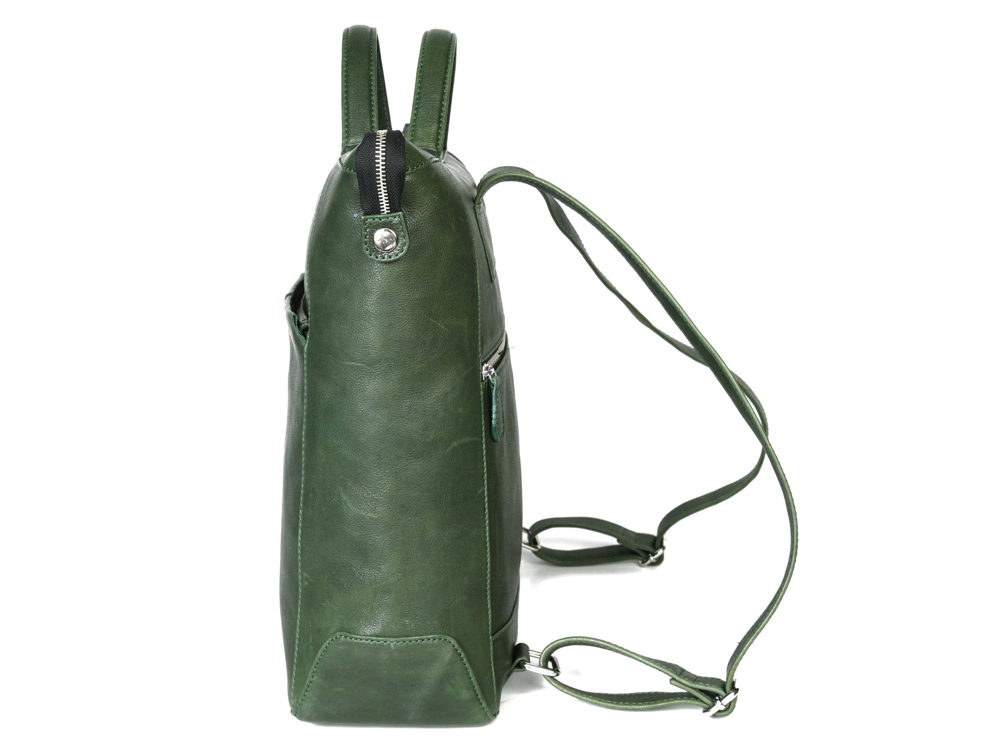 This versatile green leather backpack combines functionality with a sleek, minimalist design, making it the perfect companion for both work and casual outings. Crafted from high-quality genuine leather, it ensures durability and a sophisticated look. With multiple compartments and adjustable straps, this bag is designed for maximum convenience and style.