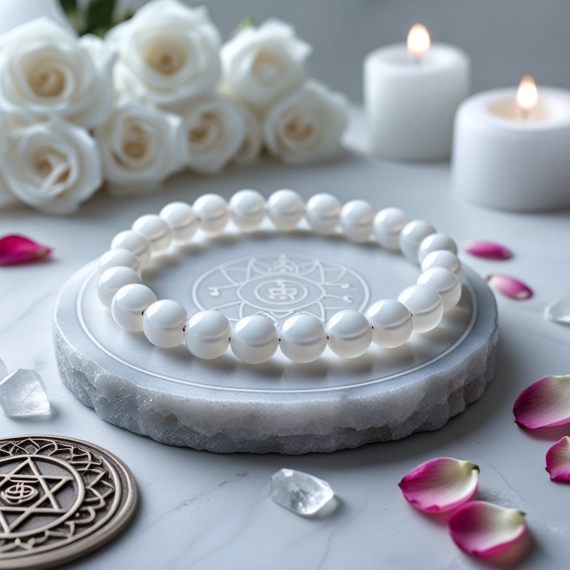 The White Agate Bracelet is a calming and spiritually purifying accessory, made from natural 8mm White Agate beads and strung on a strong stretchable nylon cord. Known for its soft, milky appearance and gentle vibration, White Agate is a stone of harmony, grounding, and emotional balance. It soothes anxiety, promotes mental clarity, and helps stabilize the aura. Associated with purity and spiritual calm, it supports both the crown and root chakras—connecting higher wisdom with inner stability. Ideal for meditation, healing practices, or everyday wear, each bracelet is spiritually cleansed and energized before delivery to bring peace and centeredness to the wearer.